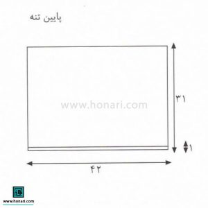 ردیف سوم: مانند ردیف اول، 4 زنجیره و 2 پایه کوتاه میبافیم. در طول این ردیف، از هر دو طرف با اضافه کردن 4 زنجیره و پایه بلند، 4 قفسه به کار اضافه میکنیم تا پهنای کار به ۱۲۲ سانتیمتر برسد.