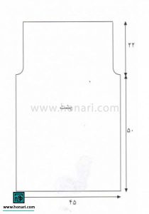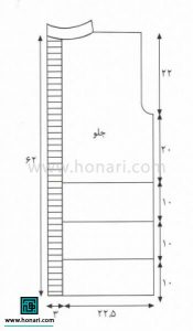 وقتی طول کار به ۶۲ سانتیمتر رسید، برای ایجاد فرورفتگی یقه، از طرف مقابل به ترتیب ۱، ۱، ۱، ۱، ۲، ۳ و ۴ دانه را میبندیم.