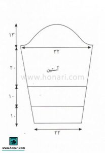 برای شکل دادن به قسمت بالای آستین، در یک سمت کار ابتدا ۱ دانه، سپس ۲ دانه و بعد ۳ دانه را میبندیم.