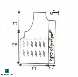 وقتی قد کار به ۳۴ سانتیمتر رسید، برای قسمت یقه، از اول رج، یک دانه، دو دانه و سپس سه دانه میبندیم.