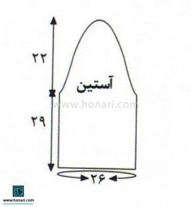 وقتی قد آستین به ۲۹ سانتیمتر رسید، از دو طرف کار شروع به کم کردن دانه میکنیم. ابتدا در هر طرف ۱، ۲ و ۳ دانه کم میکنیم. پس از آن، به کم کردن ادامه میدهیم، اما این بار در هر طرف فقط یک دانه کم میشود.