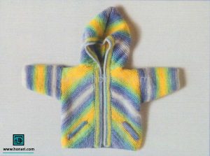 با سلام به همه دوستان گرامی. امروز میخواهیم روش بافت یک پلیور کلاهدار زیبا برای نوزاد را به شما آموزش دهیم. این پلیور دارای زیپ در قسمت جلو است و شما بسته به سلیقه خود میتوانید به جای زیپ، از دکمه نیز استفاده کنید. این مدل برای نوزادان شش ماهه تا یک ساله مناسب است.