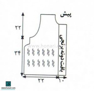 قسمت جلوی لباس هم دقیقاً به همین شکل بافته میشود. فقط در قسمت بالای آن، سه جای دوگانه برای دکمه در نظر گرفته میشود.