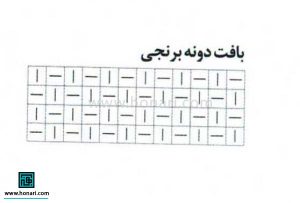 ۱۸ دانه را به روش دانه برنجی میبافیم. بعد: ۱ دانه ساده، ۶ دانه برعکس، ۱ دانه ساده، ۶ دانه برعکس، ۱ دانه ساده، ۶ دانه برعکس، ۱ دانه ساده، ۶ دانه برعکس، ۱ دانه ساده، ۶ دانه برعکس، ۲ دانه ساده. دوباره ۱۸ دانه باقیمانده را به روش دانه برنجی ادامه میدهیم.