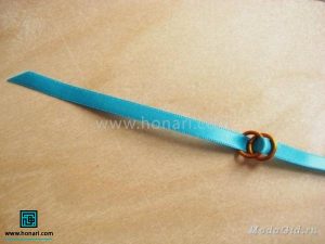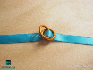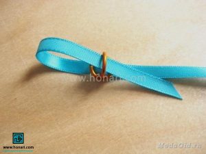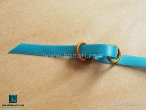حالا نوک روبان را از داخل حلقه بالایی عبور میدهیم.