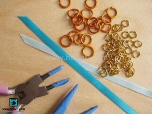 برای شروع کار و ساختن این زیورآلات، به یک **حلقه اتصال** و یک **روبان ساتن** با پهناى هفت میلیمتر در رنگ مورد علاقهتان نیاز دارید.