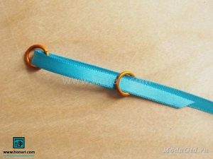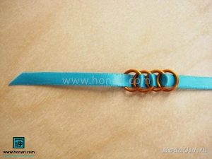 در این مرحله، باید دو عدد از حلقهها را از داخل روبان عبور دهیم.
