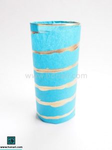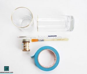 چسب را به صورت اریب و مورب دورتادور لیوان بپیچید. بین هر نوار چسب حدود ۲ میلی‌متر فاصله بگذارید. دقت کنید که چسب کاملاً به لیوان بچسبد و هیچ حباب یا هوایی زیر چسب باقی نماند.