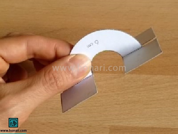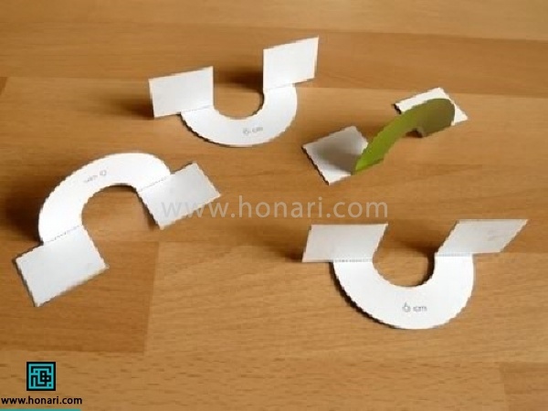 قطعههای مورد نظر را از صفحه مقوایی جدا کنید. سپس، با دقت و از روی خطوطی که مشخص شده، آنها را تا بزنید.