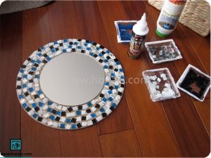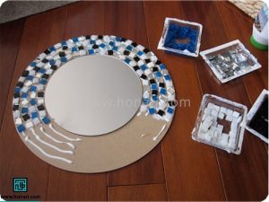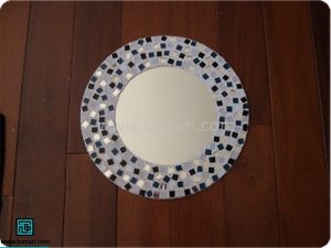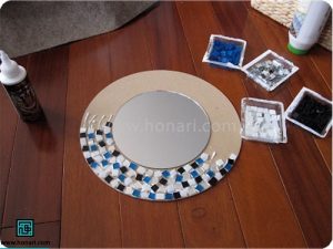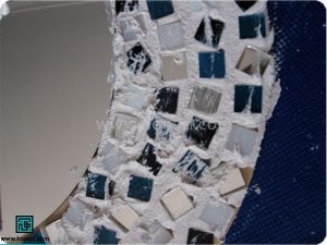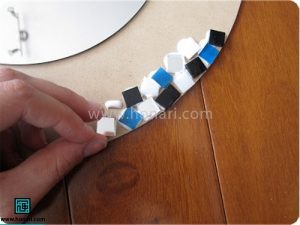 در میان کاشیها، قطعههای کوچک آینه را که به شکل مربع هستند نیز قرار میدهیم.