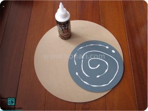 یک دایره چوبی داریم. وسط این دایره، یک چیز دیگر را محکم به آن میچسبانیم.