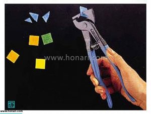 با کمک انبر مخصوص، کاشی‌ها را به قطعات ریزتر خرد می‌کنیم.