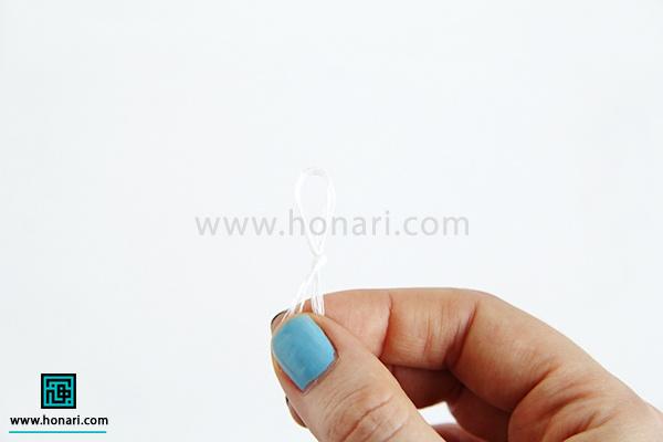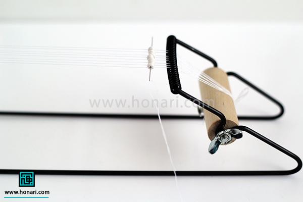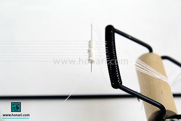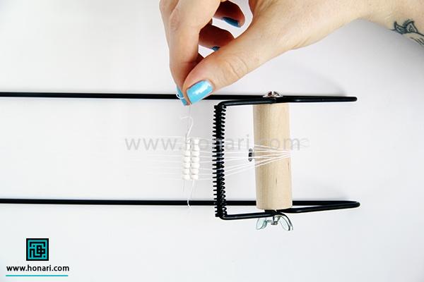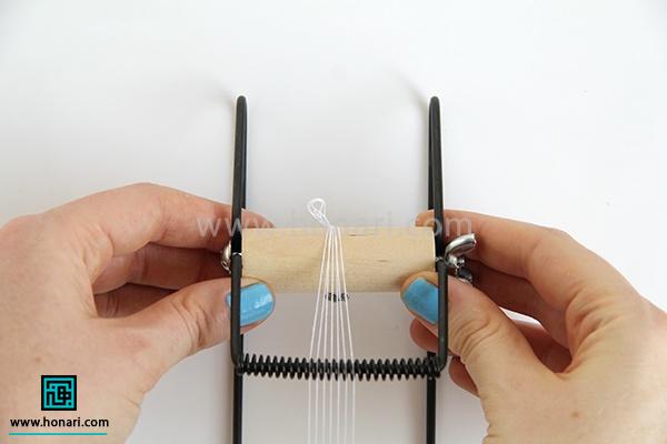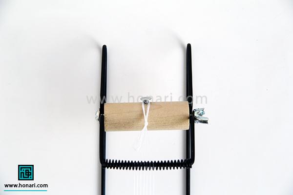 نخ را از قلاب دستگاه آویزان میکنیم.