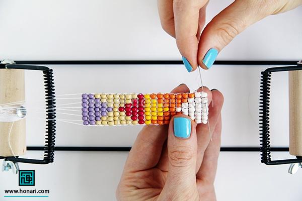 آموزش دستبند منجوقی با استفاده از دستگاه منجوق بافی