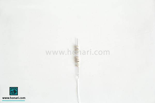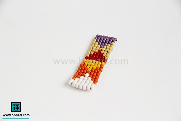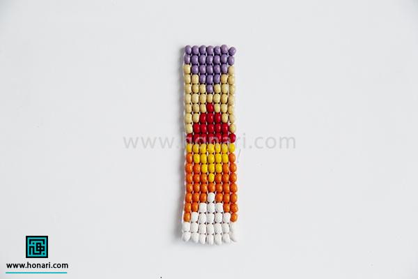 مهرهها را هم به همان ترتیبی که در الگوی کارمان مشخص شده، یکییکی وارد سوزن میکنیم.