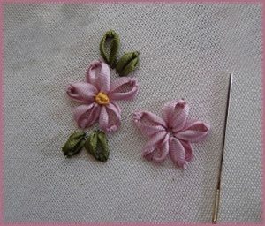 در انتها، با کمک یک روبان زرد رنگ، یک گره فرانسوی برای وسط گل میدوزیم.