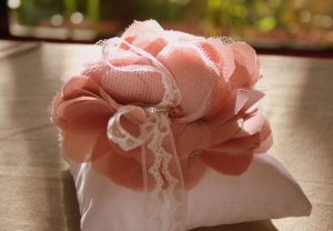 میتوانید با اضافه کردن چند روبان دیگر، تزیین گل را کاملتر کنید و از آن به عنوان جایگاهی برای نگهداری حلقهها استفاده نمایید.