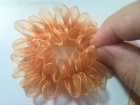 مرحله چهارم: دو سر روبان را به آرامی به طرفین بکشید تا به طور کامل حالت چین دار و جمع شده پیدا کند.