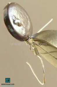 قسمت پایینی گوشواره را طبق شکل، از داخل سر سوزن مخصوص عبور داده و سپس آن را درون حلقه قرار میدهیم.