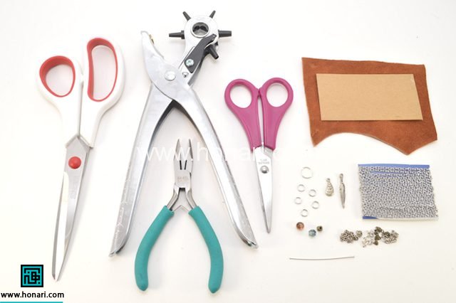 وسایل و ابزار لازم برای درست کردن یک جاسوییچی چرمی: