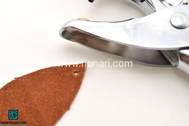 با پانچ، یک سوراخ در انتهای برگ ایجاد کنید.