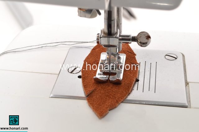 با کمک چرخ خیاطی، یک خط دقیقاً در مرکز برگ بدوزید.