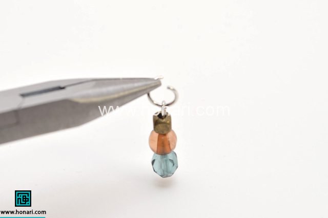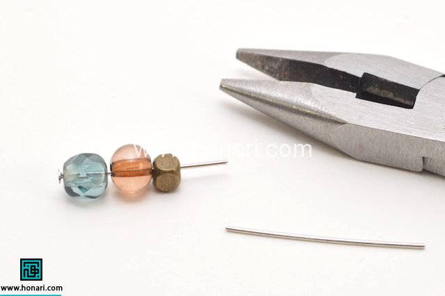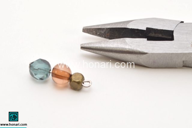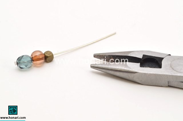 برای وصل کردن مهرهها و سنگها، اول آنها را روی میخِ صاف قرار دهید.