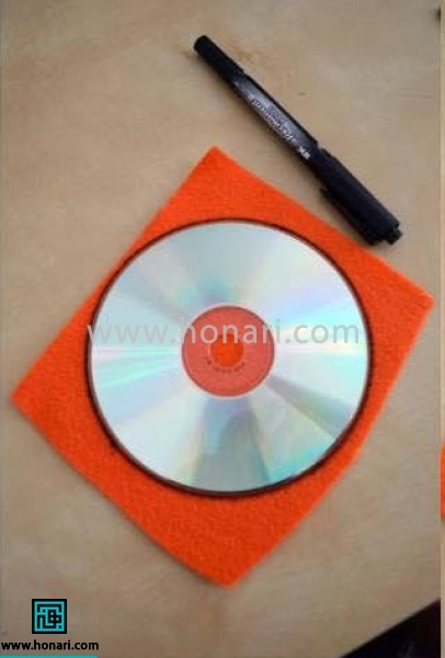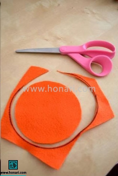 یک دایره روی پارچه نمدی خود بکشید. فراموش نکنید که اندازه این دایره، بر کوچک یا بزرگ شدن گل نمدی شما تأثیر میگذارد.