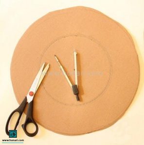 حالا با قیچی، قسمت وسط الگو را به دقت میبریم. به این ترتیب، الگوی حلقهای نمدی ما کامل میشود.