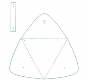 مرحله چهارم: دو گوشه پایینی مثلث را طوری روی هم میگذاریم که سوراخهای ایجاد شده دقیقاً در راستای هم قرار بگیرند. سپس قسمت زیرین دکمه را از داخل این سوراخها عبور میدهیم.