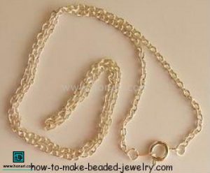 حالا بین هر آویزی که به زنجیر وصل میکنیم، دو حلقه از زنجیر را خالی میگذاریم. سپس آویز بعدی را به حلقه سوم زنجیر متصل میکنیم.
