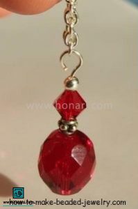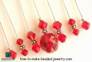 در مرحله دوم کار، دانههای کریستال هامون را به ترتیب از بزرگ به کوچک، از داخل سوزنهای مخصوص عبور میدهیم. بین هر دو کریستال، یک قطعه نگهدارنده قرار میدهیم و پس از آخرین کریستال، یک مهره درخشان به رنگ طلایی اضافه میکنیم.