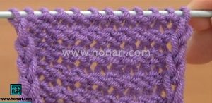 کار بافتنی را ادامه میدهیم و رجهای باقیمانده را مانند قبل میبافیم. به این صورت که رجهای فرد (مثل رج اول) و رجهای زوج (مثل رج دوم) را مشابه الگوی اولیه تکرار میکنیم. در پایان، نتیجه کار شبیه تصویری خواهد شد که در مقابلتان قرار دارد.