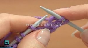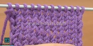 تمام دانههای رج را به همین روش ادامه میدهیم و میبافیم.