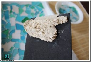 مخلوط مورد نیاز (پودر خاک سنگ همراه با سیمان سفید) را آماده می‌کنیم.