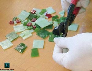 با استفاده از انبر مخصوص، کاشیها و تایلها را به قطعات ریز خرد میکنیم.