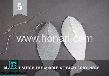قسمت سفید رنگ بدنه را به بخش خاکستری آن متصل کنید و بدوزید. فقط توجه داشته باشید که باید یک قسمت از آن را نبندید و باز بگذارید.