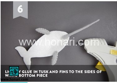 بالهها و دم ماهی را مطابق شکل، با چسب به قسمت سفید رنگ بدنه بچسبانید.