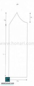پشت: با رنگ شماره ۵۱۰۹ پونپونلا، ۸۵ دانه سر بیندازید. سپس ۱۰۰ سانتیمتر بافت ساده انجام دهید. در ادامه، مانند قسمت جلوی کار، از دو طرف، محل قرارگیری آستین را کمکم ببندید. وقتی قد قسمت بازوی لباس به ۲۵ سانتیمتر رسید، همه دانههای باقیمانده را یکجا ببندید.