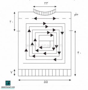 وقتی قد کار به ۵۰ سانتی‌متر رسید، دیگر به سمت بالا ادامه نمی‌دهیم و فقط در دو طرف، بافت موتیف را ادامه می‌دهیم تا عرض کار به ۵۵ سانتی‌متر برسد.