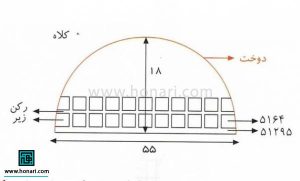 کلاه: با نخ سوپرلانا، به اندازه ۶۷ دانه سر میاندازیم و سه رج رکن میبافیم. سپس نخ را به ماکسی فلور تغییر میدهیم و از اول و آخر رج، سه دانه را به صورت زیر میبافیم.