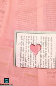 در مرحلهی بعد، برای اینکه شکل نهایی کاملاً متقارن و یکدست شود، کاغذ را از وسط تا میزنیم. سپس، الگوی نیمی از قلب را روی آن رسم میکنیم.