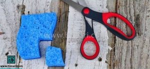 بعد، یک اسفنج را مانند تصویر زیر قیچی میکنیم یا میبریم.