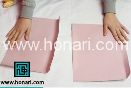 دو مستطیل را روی هم قرار دهید، سپس سه طرف آنها را با فاصله کمی از هم با منگنه به هم وصل کنید.