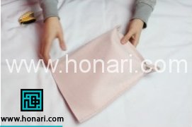 حالا محتویات داخل کیف را کاملاً خارج کنید. سپس خود کیف را به حالت پشت و رو درآورید، طوری که قسمت منگنه‌ها به سمت درون کیف قرار بگیرد.
