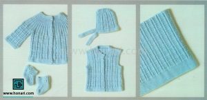 این آموزش بافت ژاکت نوزادی در چند بخش جداگانه ارائه میشود. در هر بخش، روش بافت یکی از قطعات این ست توضیح داده میشود.
