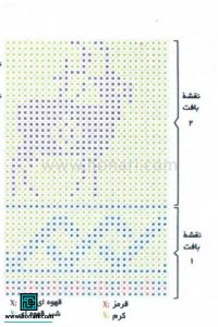 هنگام بافت نقشه شماره ۱، از هر دو طرف کار، بعد از هر ۸ رج، یک دانه اضافه میکنیم. وقتی نقشه به پایان رسید، دوباره با نخ کرم رنگ و با همان بافت ساده ادامه میدهیم.