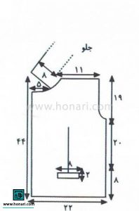 در پایان، یقه جلو را به سمت بیرون تا زده و میدوزیم.