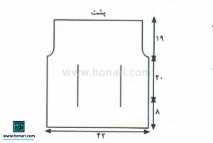 برای درست کردن جیب تزئینی، ۵ دانه جدید سر میاندازیم، ۸ سانتیمتر به صورت رکن میبافیم و سپس همه دانهها را میبندیم. در پایان، این جیب را در جای مناسب، روی هر دو طرف قسمت جلو، محکم میدوزیم.
