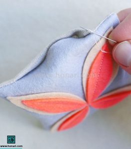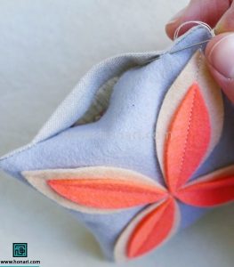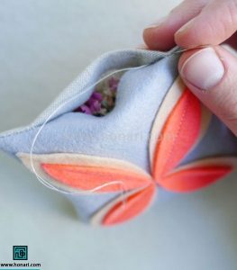 آن را به حالت اول برمیگردانیم. سپس داخل آن را با گیاهان خوشبویی که دوست داریم پر میکنیم و بعد شروع به دوختن آن مینماییم.